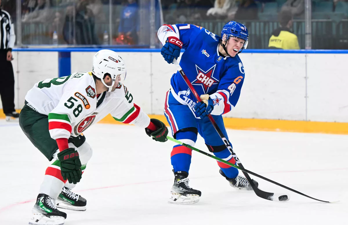 После первого матча на турнире Пучкова против «Ак Барса» нападающий СКА Матвей Поляков ответил на вопросы корреспондента Охтинского пресс-центра.