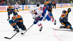 Защитник «Шанхай дрэногс» Александр Брынцев в первом матче новой команды (7:4) сделал голевую передачу и ответил на вопросы Охтинского пресс-центра.