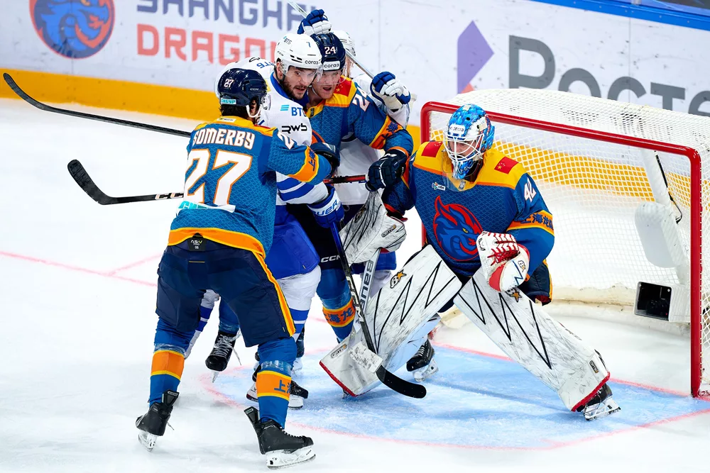 Нападающий «Динамо» Максим Джиошвили ответил на вопросы Охтинского пресс-центра после гостевой победы над «Шанхайскими драконами» (5:1).
