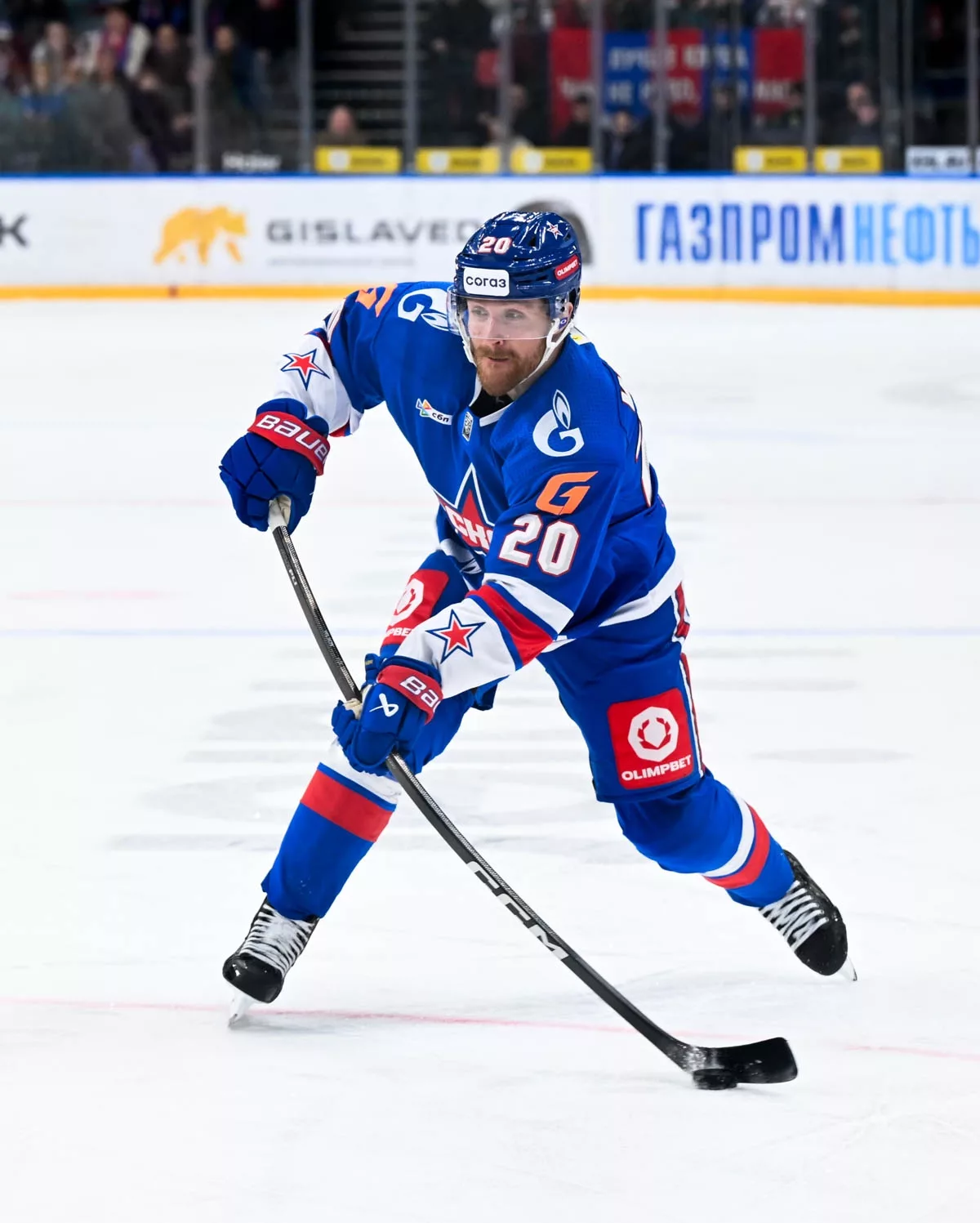 Нападающий СКА Скотт Уилсон после победы в домашнем матче с «Салаватом Юлаевым» (4:0) комментирует для Охтинского пресс-центра особенности своей игры в составе «армейцев».